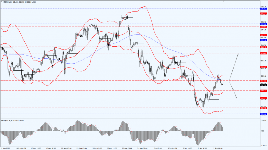 • 如果油价运行于 85.72 一线下方,届时关注 84.02 和 82.72 位置的支撑力度。