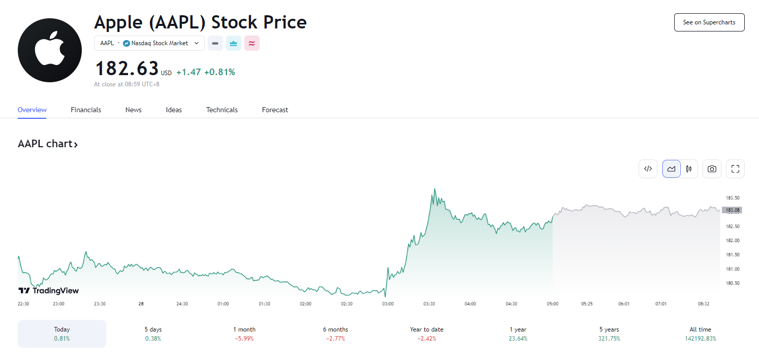 苹果对上述消息拒绝置评。传出消息后,苹果在美股午盘时段从跌近 0.9% 的水平反弹,午盘转涨后曾涨超 1.5%,最终收涨约 0.8%,走出连跌两日刷新的 2023 年 11 月 6 日以来收盘低位。