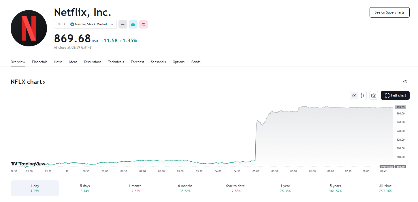 由于奈飞发布的第四季度财报表现强劲,超过了华尔街对收入和利润的预期,推动其股价盘后上涨超 14%。