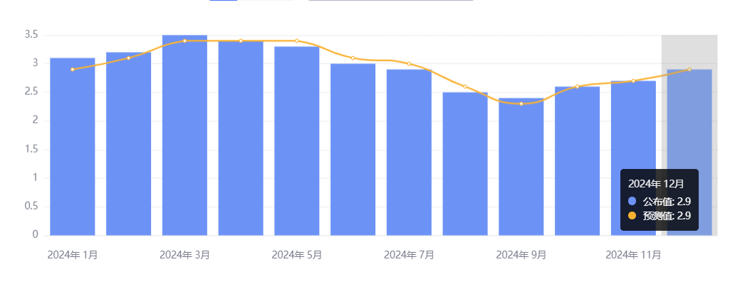 15 日,美国劳工统计局公布,12 月未季调 CPI 年率升至 2.9%,为连续第三个月反弹,至 2024 年 7 月以来新高,符合市场预期,前值为 2.7%;核心 CPI 年率录得 3.2%,为 2024 年 8 月以来新低,低于预期和前值 3.3%。