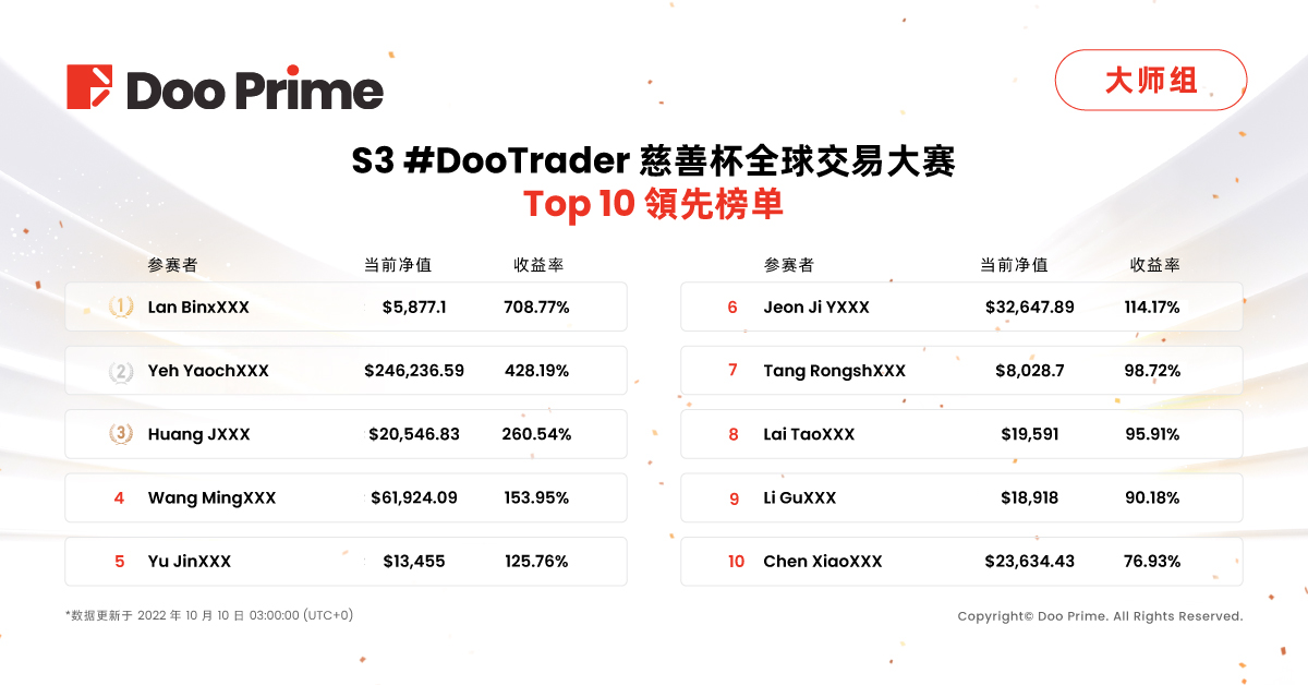 S3 #DooTrader 大赛战报:大师组冠亚军盈利出金超过40万美金,经典组战况激烈波段交易彰显威力