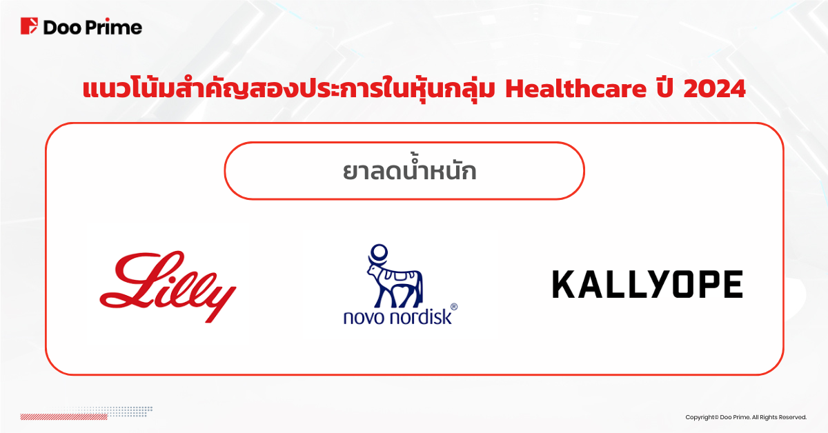 ความนิยมที่เพิ่มขึ้นของหุ้นด้าน Healthcare ในปี 2024 มีการเชื่อมโยงอย่างซับซ้อนกับแนวโน้มที่สำคัญสองประการจากปี 2023 ได้แก่ การเพิ่มขึ้นของยาลดน้ำหนักและการเติบโตอย่างรวดเร็วของ AI ปัจจัยทั้งสองนี้มีแนวโน้มที่จะครองภาค Healthcare ในปี 2024
