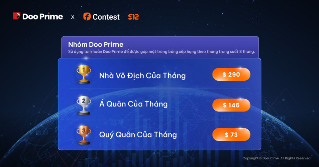 Với danh tiếng được gây dựng từ lâu trong ngành, Doo Prime đã tiếp tục trở lại cuộc thi với tư cách Nhà Tài Trợ Kim Cương. Sự hiện diện này được hứa hẹn sẽ thu hút sự quan tâm và chú ý mạnh mẽ từ phía công chúng. Ngay bây giờ, cuộc thi không chỉ còn là đấu trường vì giải thưởng và danh dự, mà còn là môi trường giao dịch đỉnh cao để các nhà giao dịch được dịp phát triển và đột phá. Vẫn với phương châm “Khách Hàng Là Trên Hết”, Doo Prime luôn ưu tiên lợi ích của khách hàng lên trên hết thông qua nỗ lực cung cấp cho các nhà đầu tư một môi trường giao dịch an toàn và bảo đảm, tuân thủ nghiêm ngặt các quy định của các tổ chức có thẩm quyền nhằm bảo vệ tuyệt đối quỹ của khách hàng.